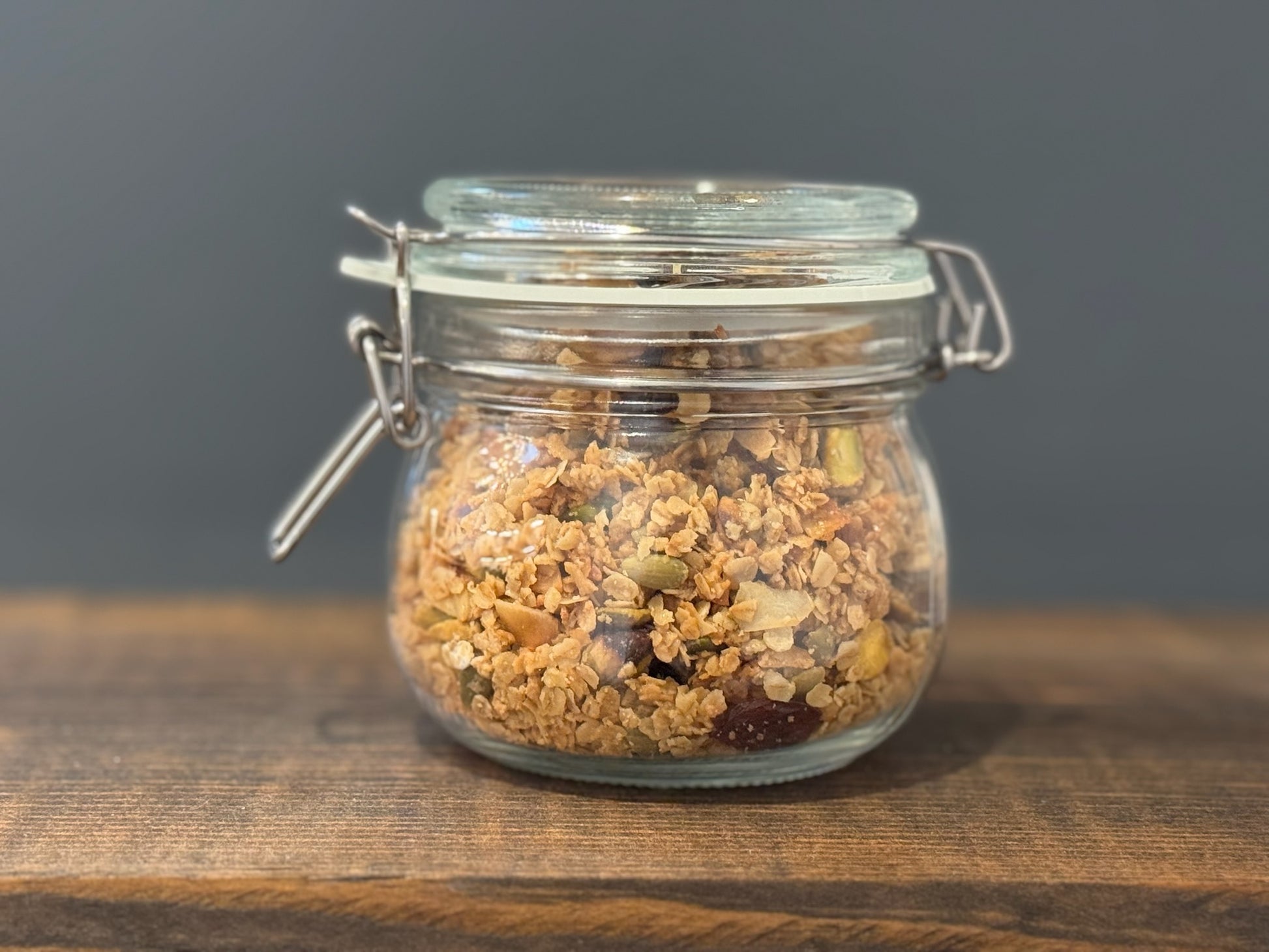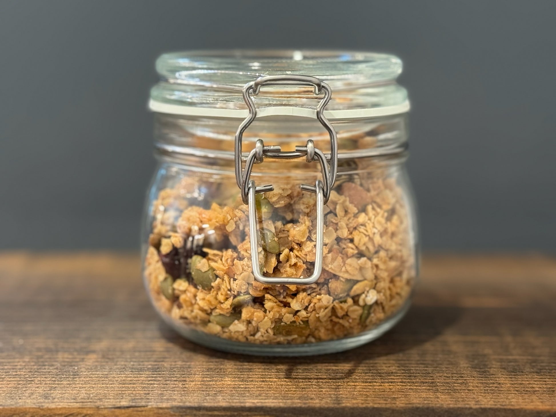 Oats, pistachios, coconut, pumpkin seeds, dried cherries, and maple syrup. It’s crunchy, it’s chewy, it’s sophisticated without being smug. Put it on yogurt, eat it out of the bag, sprinkle it on your taxes—whatever. It makes everything better.